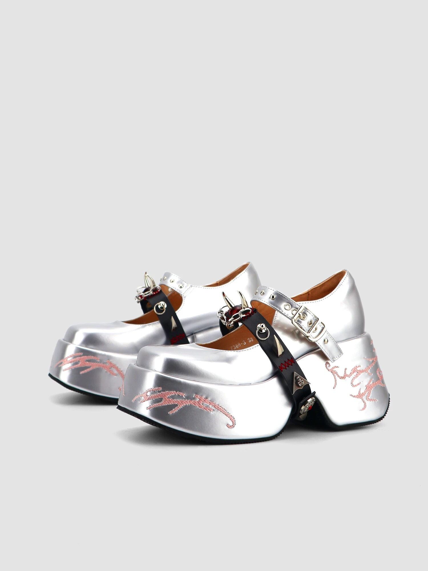 病みかわいい 22〜24.5cm 個性的 厚底スタッズ蜘蛛ベルト ローファー パンプス 病みかわいい秋冬ブーツ y2k サンダル ゴスロリ系ファッション 地雷系 暗黒系 yk25032501 | 病みかわいい