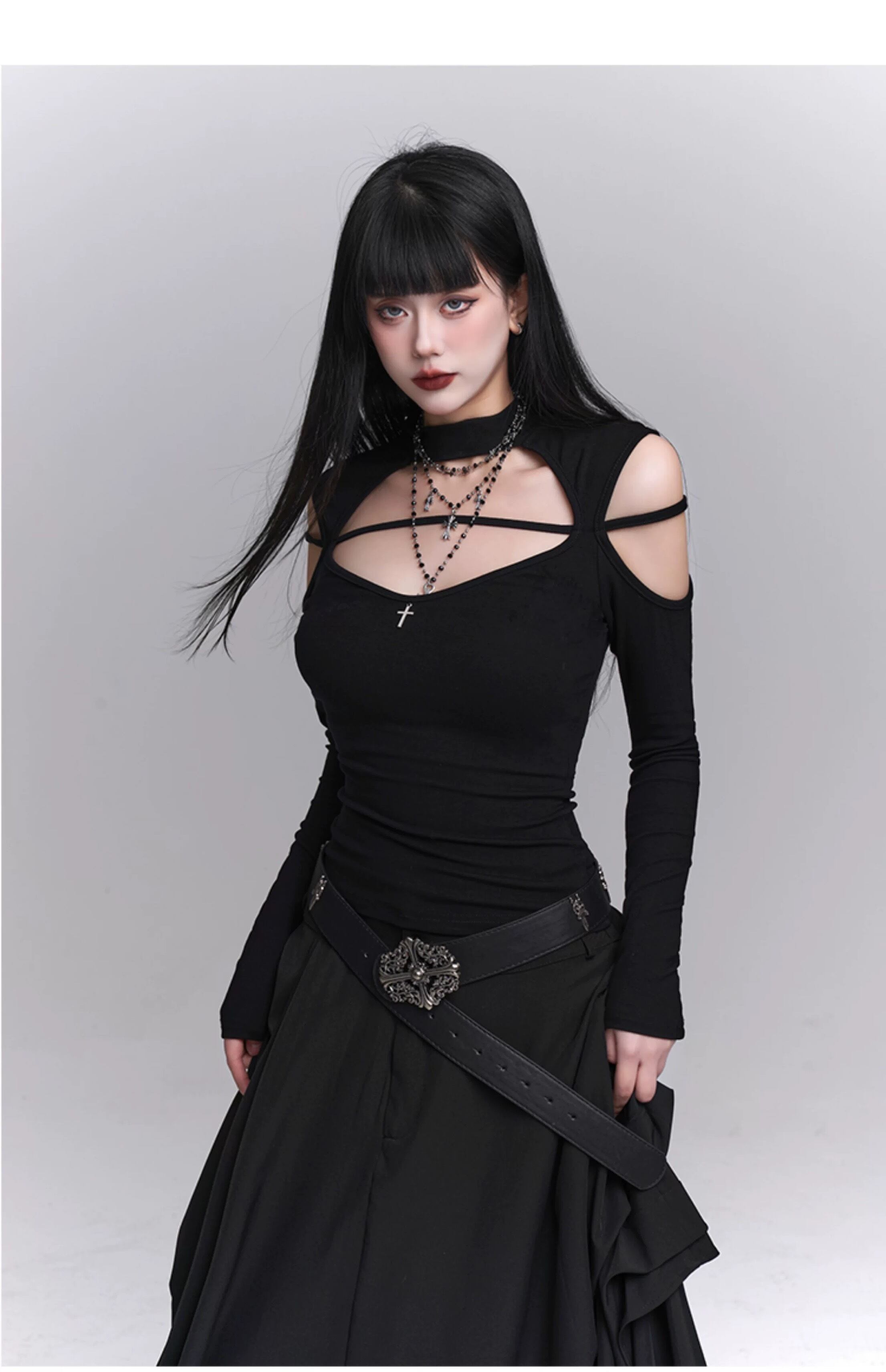 病みかわいい 肩空きトップス 春服 ユニセックス メンズ パーカー カジュアル おしゃれ 原宿系ゴスロリ系ファッション 地雷系 おしゃれ y2kファッション 地雷系ファッション ゴスロリファッション yk25040901 | 病みかわいい