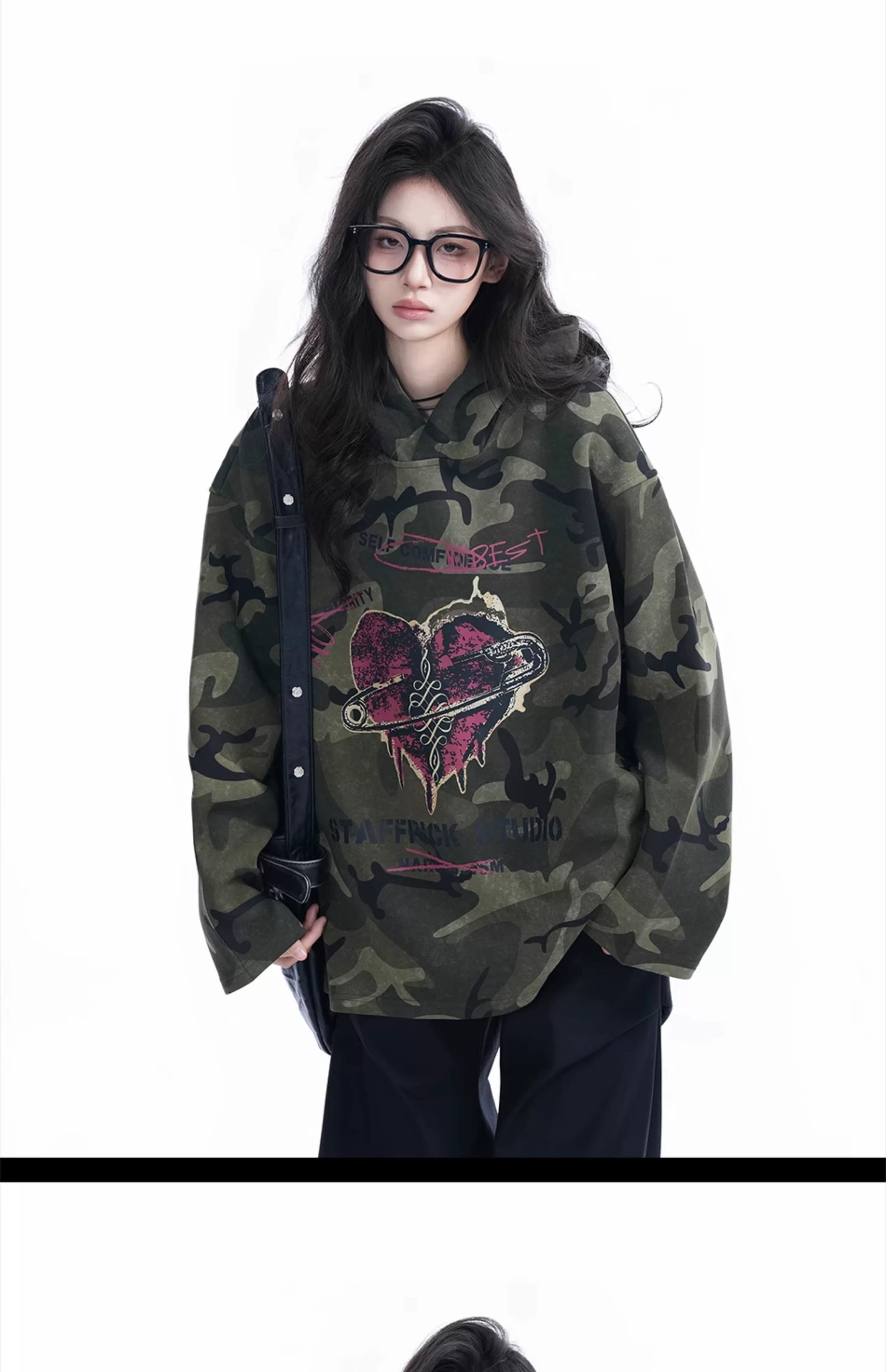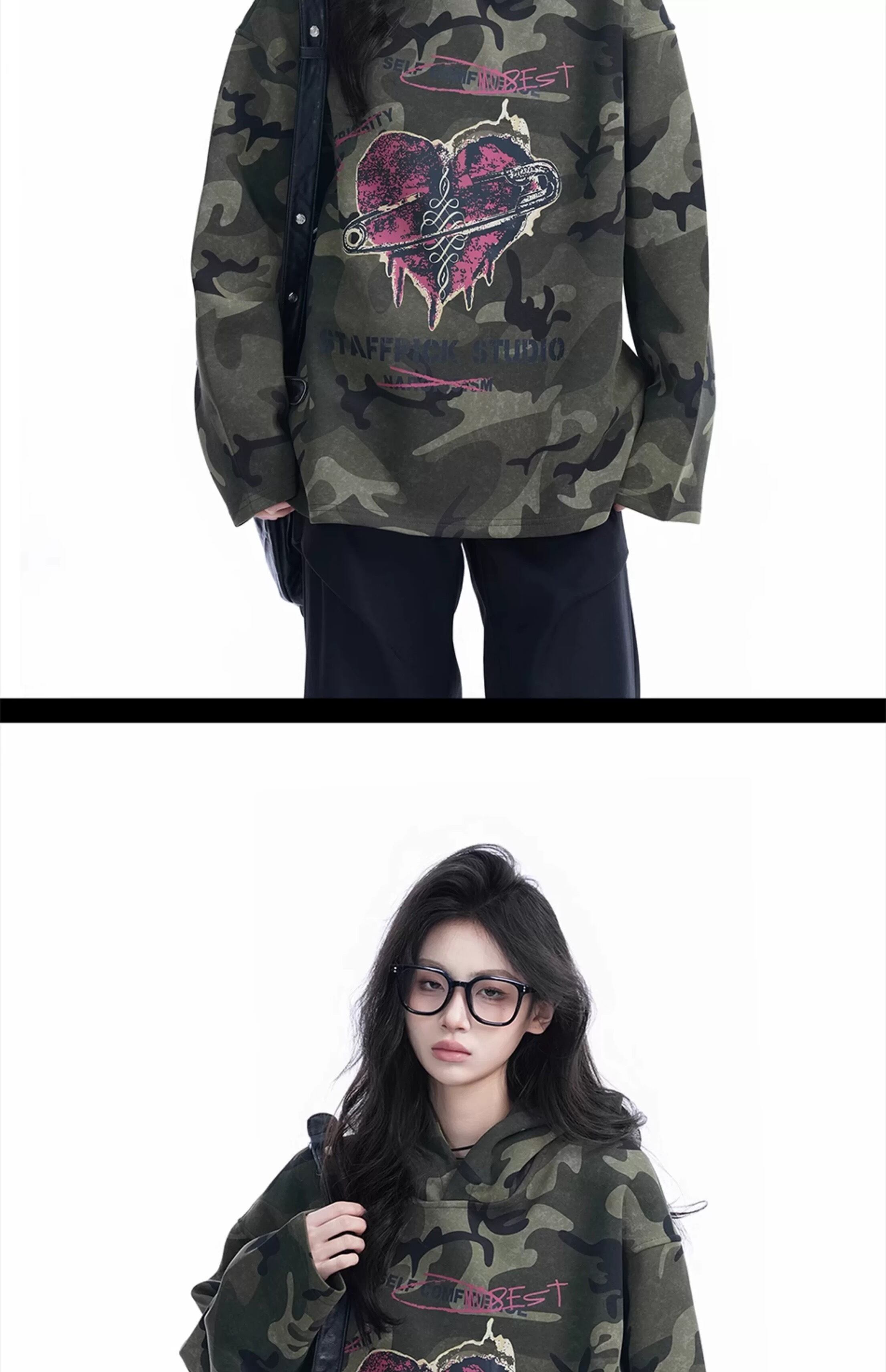 病みかわいい 迷彩心臓柄トレーナーパーカー カジュアル おしゃれ 原宿系ゴスロリ系ファッション 地雷系 おしゃれ y2kファッション 地雷系ファッション ゴスロリファッション yk25101001 | 病みかわいい