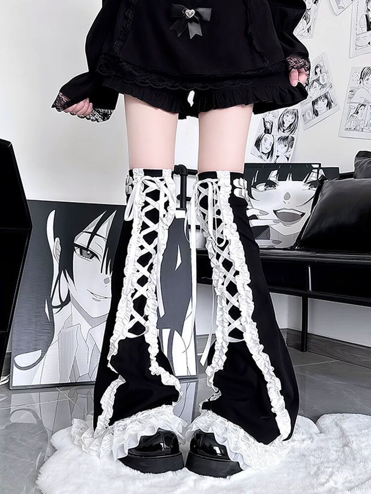 病みかわいい 個性的 レースアップフレアハイソックス レッグウォーマー コスプレ ユニセックス アクセサリー 秋冬 地雷系アクセサリー 靴下 アクセ 病み 地雷系アクセ yk25110801 | 病みかわいい