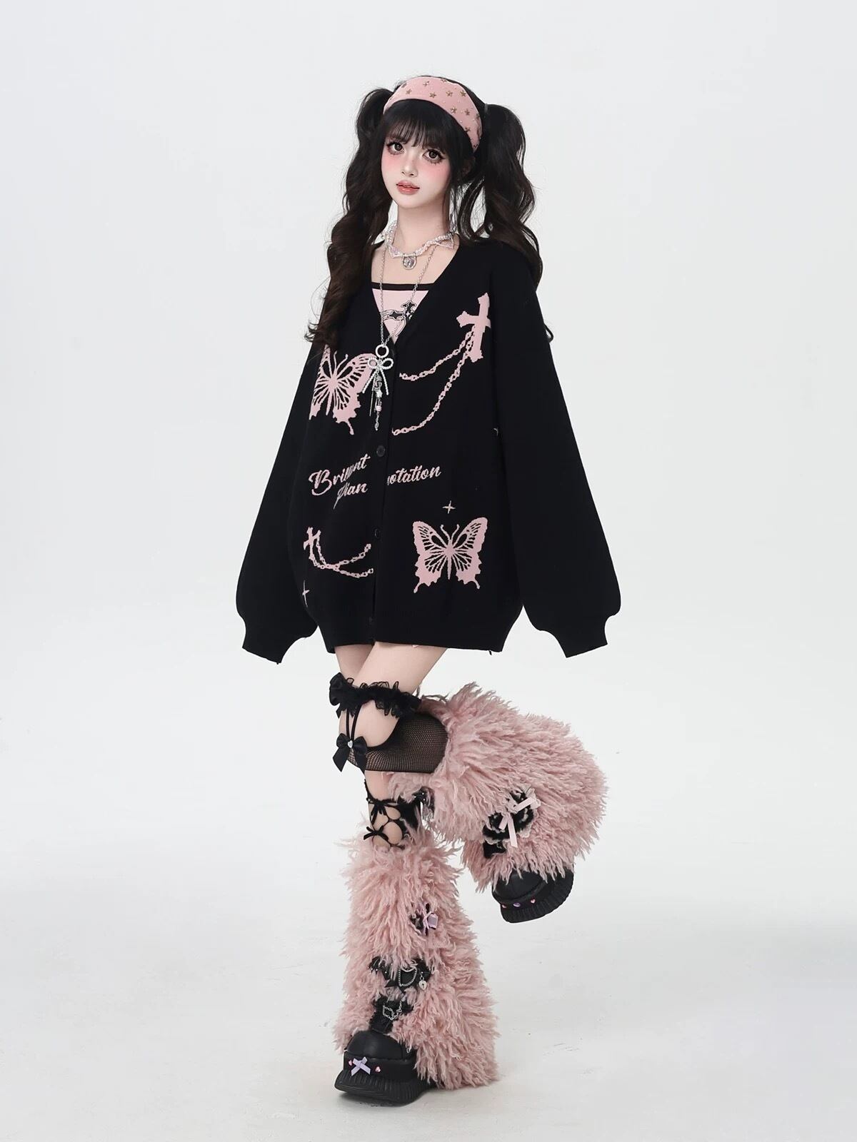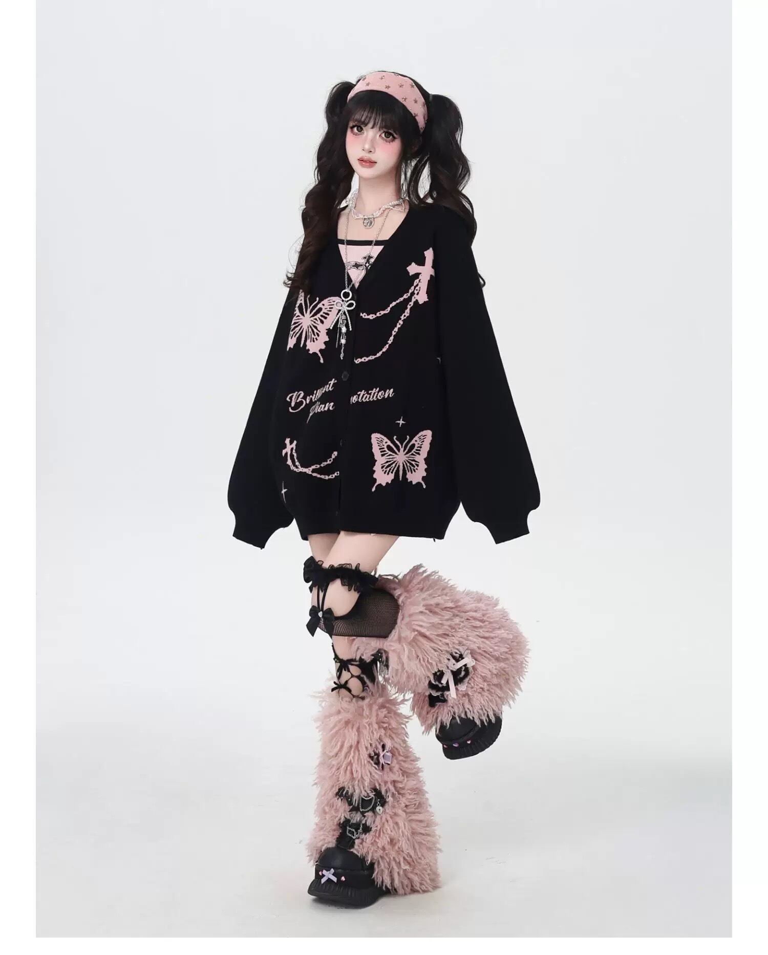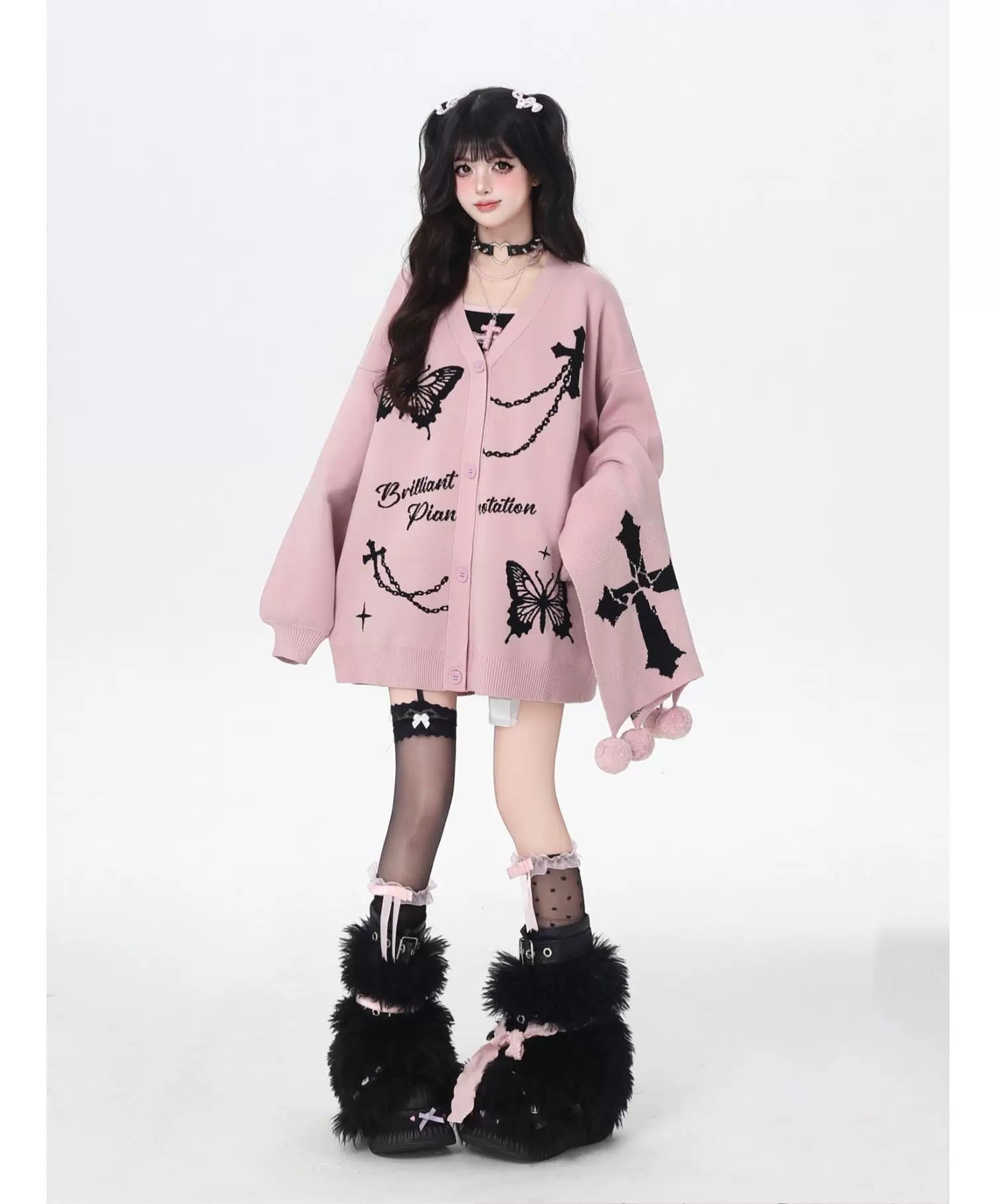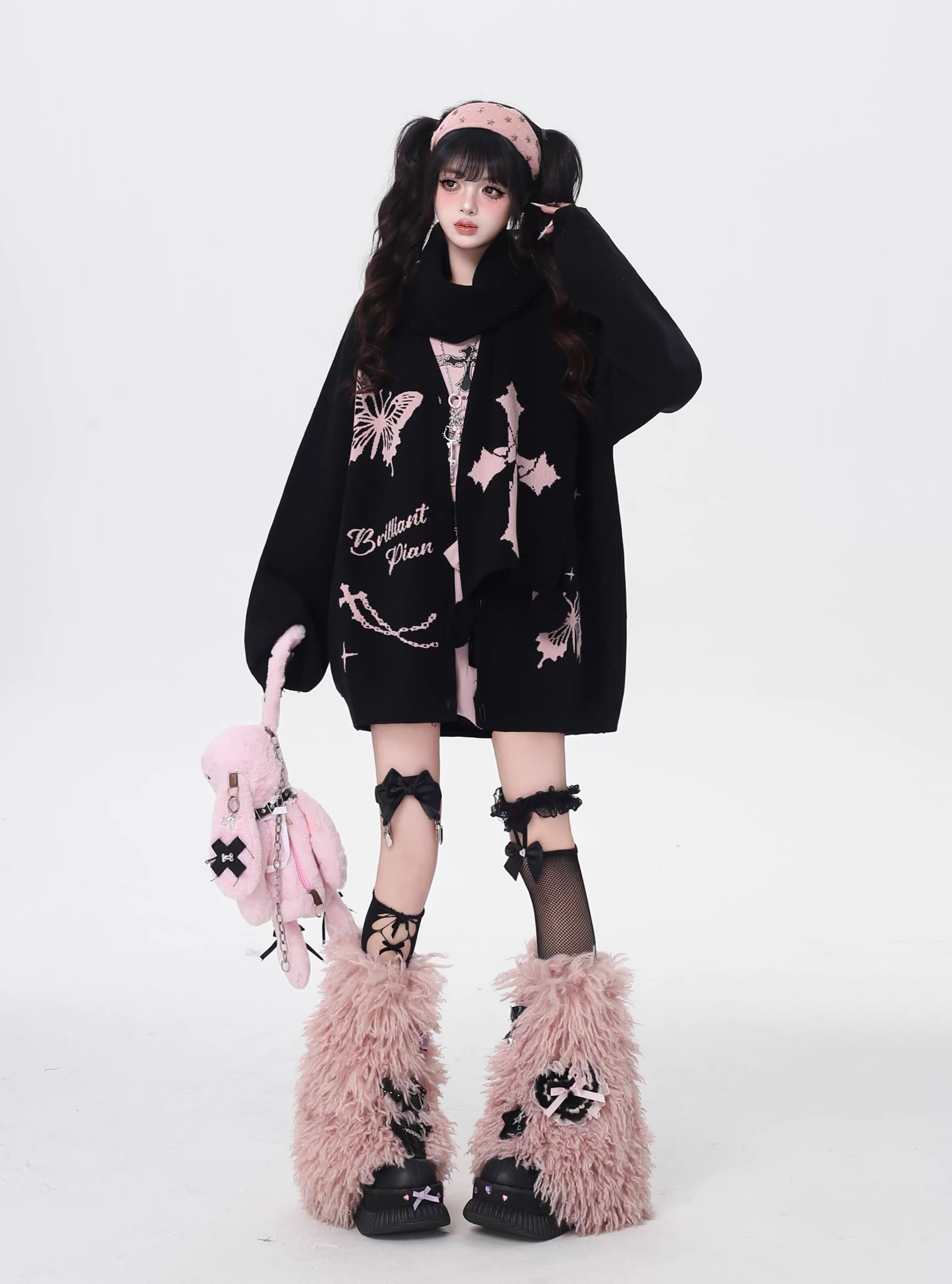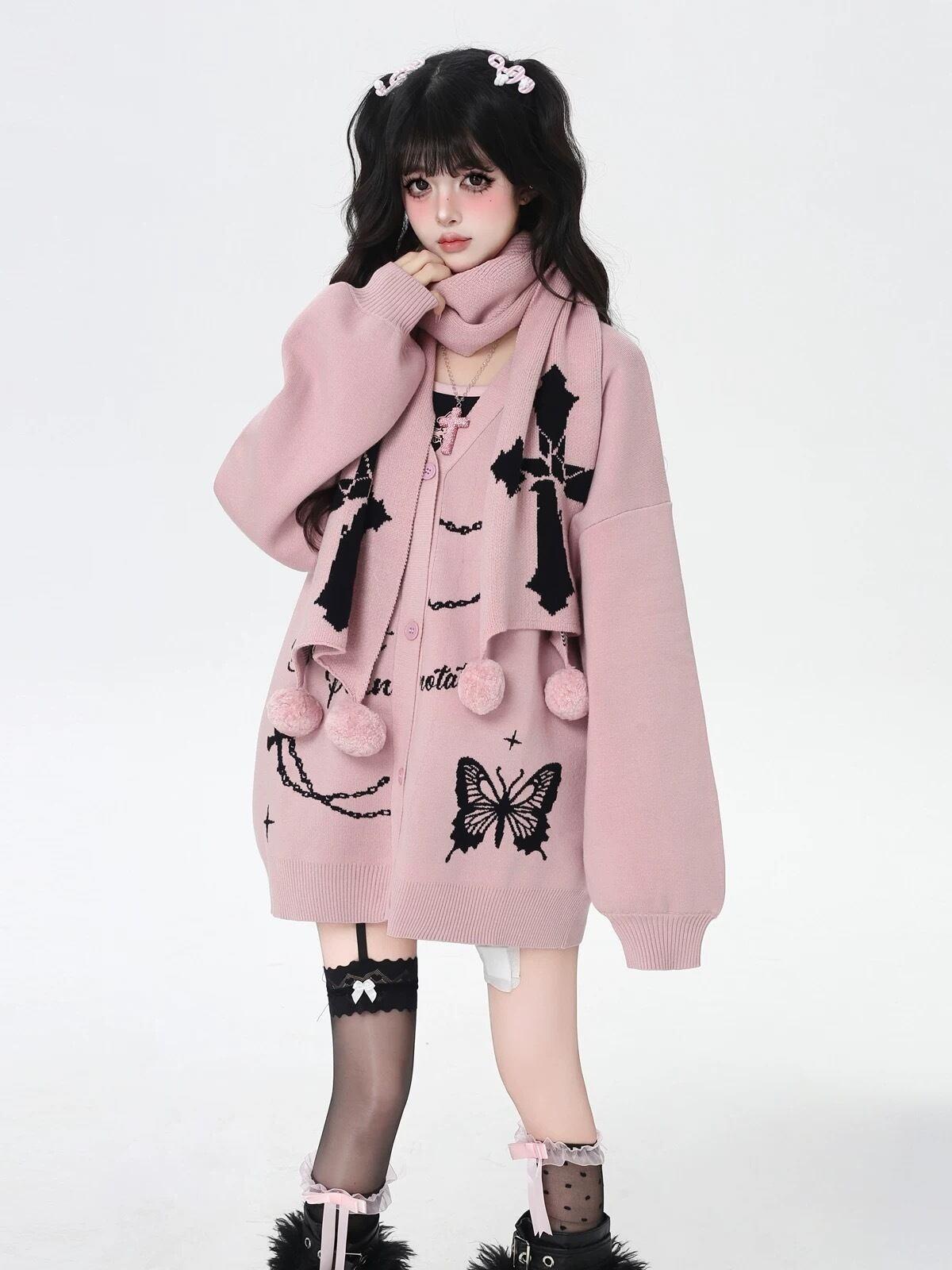 病みかわいい マフラー付きカーディガン 地雷系 カジュアル おしゃれ 原宿系ゴスロリ系ファッション 地雷系 おしゃれ y2kファッション 地雷系ファッション ゴスロリファッション yk25111701 | 病みかわいい