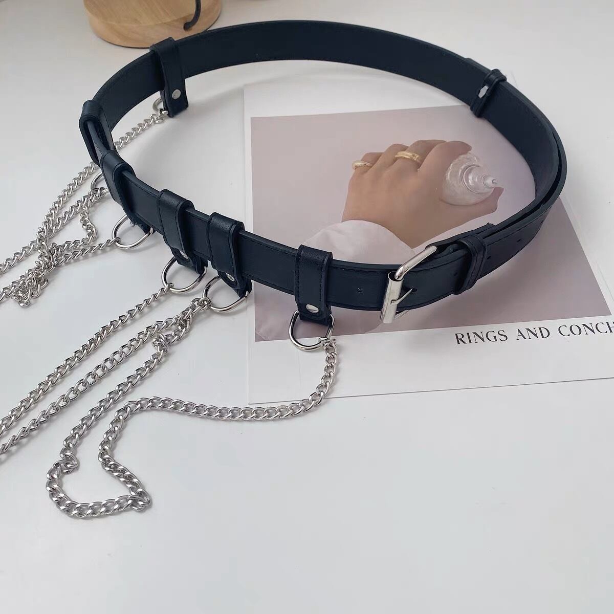 病みかわいい チェーンウェストベルト おしゃれ パンク ベルト フェイレザー yk23030103