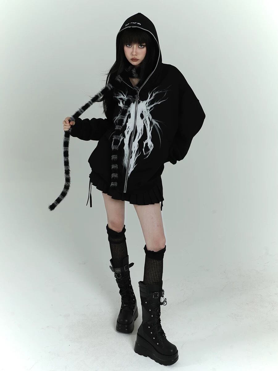 病みかわいい 個性的 ゴシックパーカー トップス 秋服 カジュアル おしゃれ 原宿系ゴスロリ系ファッション 地雷系 おしゃれ y2kファッション 地雷系ファッション ダンス yk24080601 | 病みかわいい